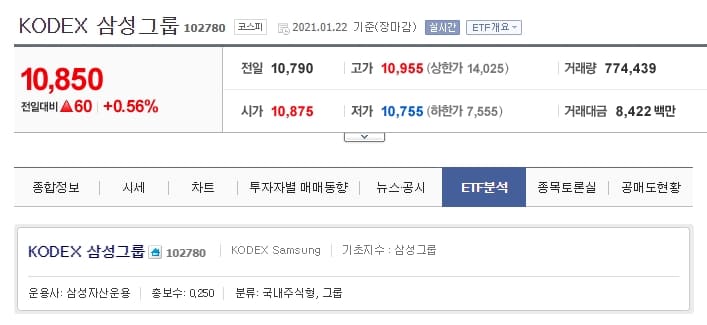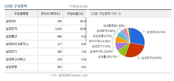 만약 여러분이 우리나라 기업 삼성에 투자를 하고 싶은데 삼성전자냐, 삼성물산이냐, 삼성전기냐 등 어떤 회사에 투자를 해야 할지 모르겠다면? 'KODEX 삼성그룹'에 투자하셔도 좋겠습니다. 이 ETF는 유가증권시장 및 코스닥에 상장된 삼성그룹 계열회사 중에서 기준에 만족하는 회사들을 시가총액 순으로 구성해둔 상품입니다.